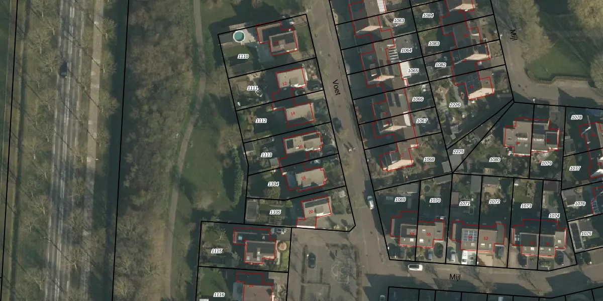 Het perceel waarop Voet 16 staat heeft een oppervlakte van 327 m². Dit is een groot perceel. De perceeloppervlakte wordt geregistreerd door het Kadaster. Gedetailleerde informatie over de maten van dit perceel kunt u vinden in het rapport Kadastrale kaart met maatvoering van Voet 16.
