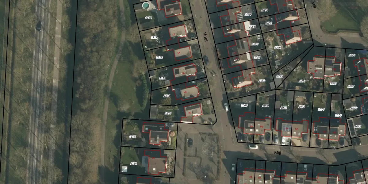 Het perceel waarop Voet 18 staat heeft een oppervlakte van 331 m². Dit is een groot perceel. De perceeloppervlakte wordt geregistreerd door het Kadaster. Gedetailleerde informatie over de maten van dit perceel kunt u vinden in het rapport Kadastrale kaart met maatvoering van Voet 18.