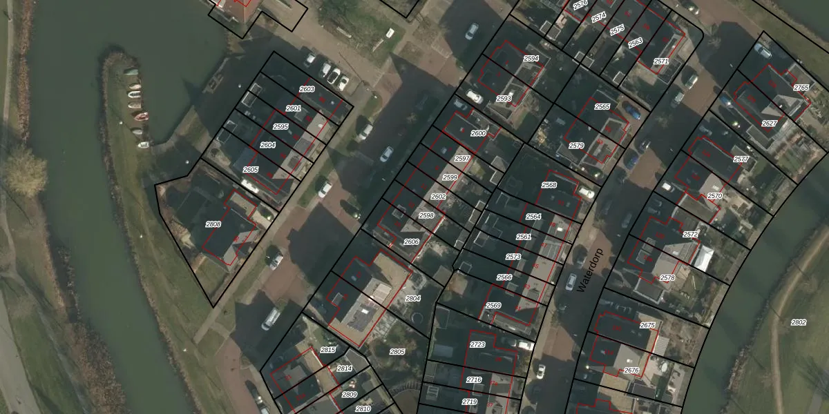 Waterdorp 13 is gelegen op kadastraal perceel BNG00F2598. Deze kadastrale aanduiding is uniek en wordt gebruikt door het Kadaster om eigendomsrechten en andere zakelijke rechten vast te leggen. Het perceel maakt onderdeel uit van de kadastrale gemeente Beuningen.