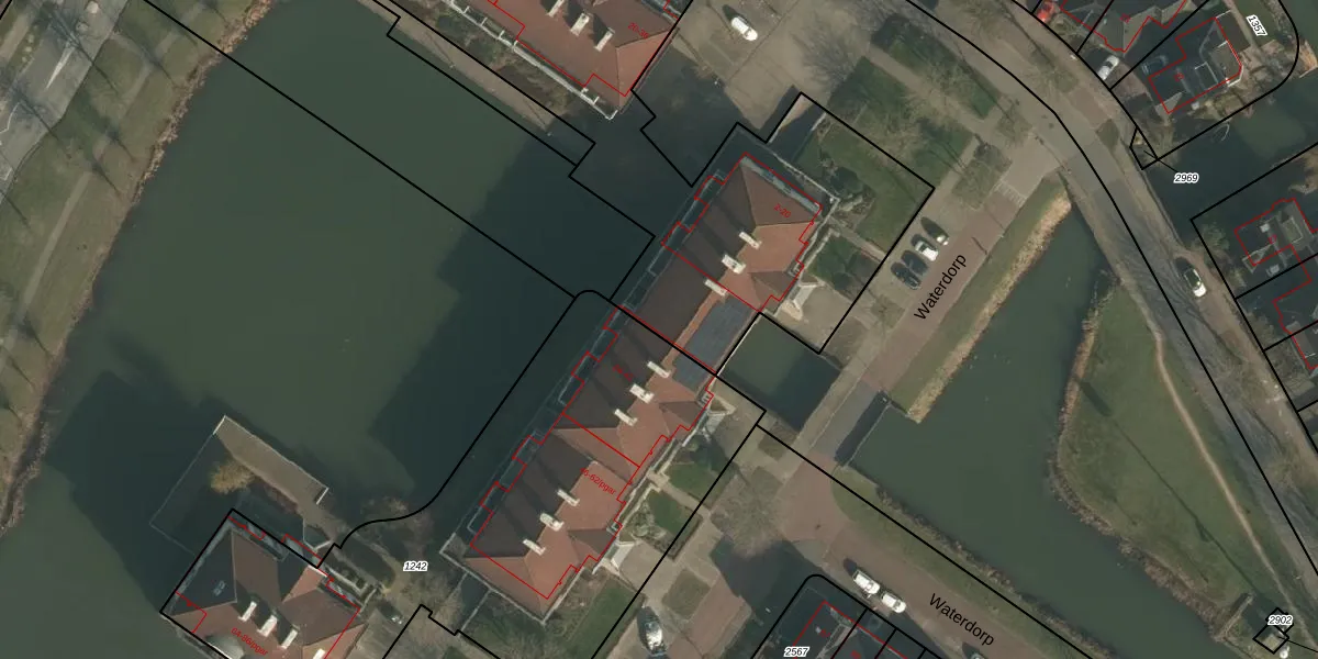 Het perceel waarop Waterdorp 34 staat heeft een oppervlakte van 3505 m². Dit is een zeer groot perceel. De perceeloppervlakte wordt geregistreerd door het Kadaster. Gedetailleerde informatie over de maten van dit perceel kunt u vinden in het rapport Kadastrale kaart met maatvoering van Waterdorp 34.
