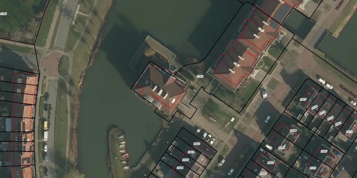 Het perceel waarop Waterdorp 64 staat heeft een oppervlakte van 2600 m². Dit is een zeer groot perceel. De perceeloppervlakte wordt geregistreerd door het Kadaster. Gedetailleerde informatie over de maten van dit perceel kunt u vinden in het rapport Kadastrale kaart met maatvoering van Waterdorp 64.