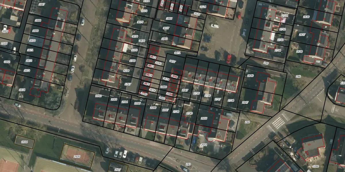 Het adres ligt op het perceel BNG00-B-3480, dat zich in de kadastrale gemeente Beuningen bevindt. Het perceel is 61 m² groot. Dat is kleiner dan de gemiddelde perceeloppervlakte in Beuningen, dat op 2259,19 m² ligt. Het grootste perceel in de kadastrale gemeente is 19,7 ha. Het kleinste perceel heeft een oppervlakte van 0 m². Op het perceel zijn 2 adressen aanwezig. De laatste wijziging in het de Basisregistratie Kadaster (BRK) was op 01-07-2003.