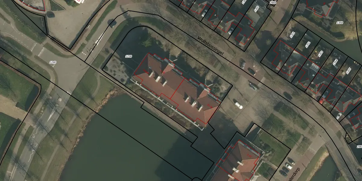 Het perceel waarop Wolfsbossingel 26 staat heeft een oppervlakte van 3505 m². Dit is een zeer groot perceel. De perceeloppervlakte wordt geregistreerd door het Kadaster. Gedetailleerde informatie over de maten van dit perceel kunt u vinden in het rapport Kadastrale kaart met maatvoering van Wolfsbossingel 26.