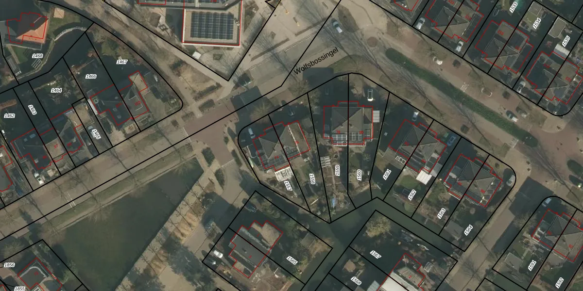 Het perceel waarop Wolfsbossingel 76 staat heeft een oppervlakte van 426 m². Dit is een groot perceel. De perceeloppervlakte wordt geregistreerd door het Kadaster. Gedetailleerde informatie over de maten van dit perceel kunt u vinden in het rapport Kadastrale kaart met maatvoering van Wolfsbossingel 76.
