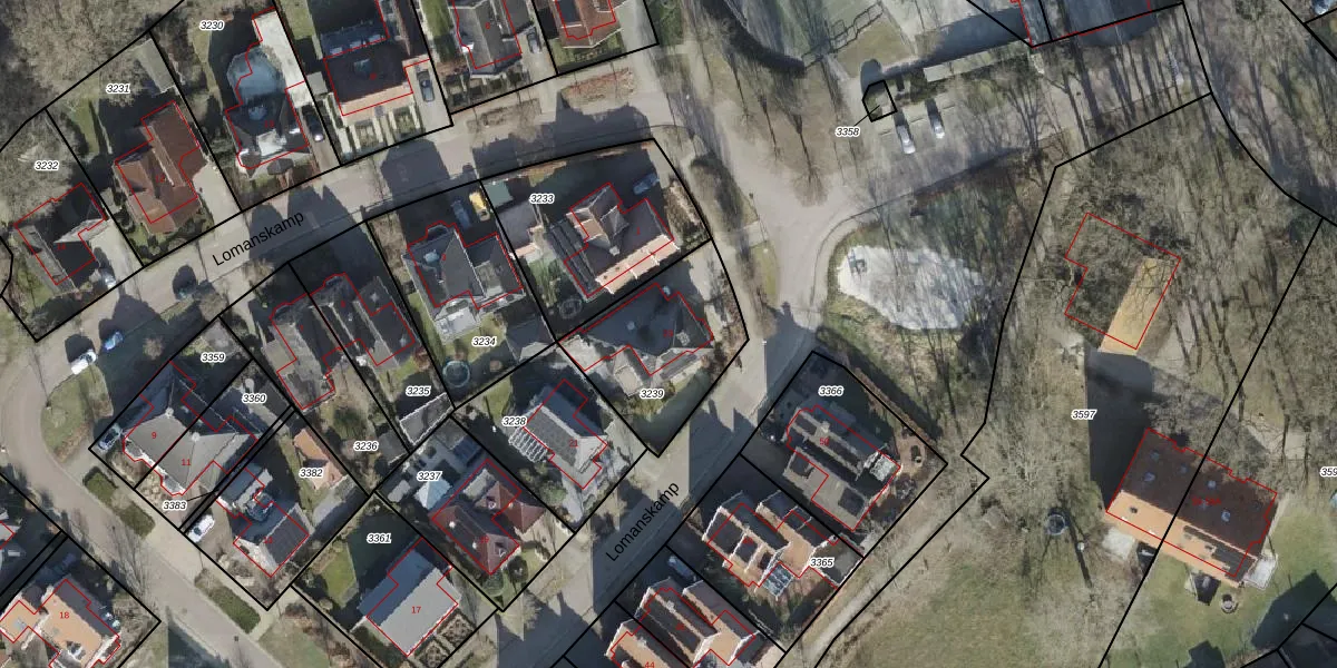 Het perceel waarop Lomanskamp 23 staat heeft een oppervlakte van 477 m². Dit is een groot perceel. De perceeloppervlakte wordt geregistreerd door het Kadaster. Gedetailleerde informatie over de maten van dit perceel kunt u vinden in het rapport Kadastrale kaart met maatvoering van Lomanskamp 23.
