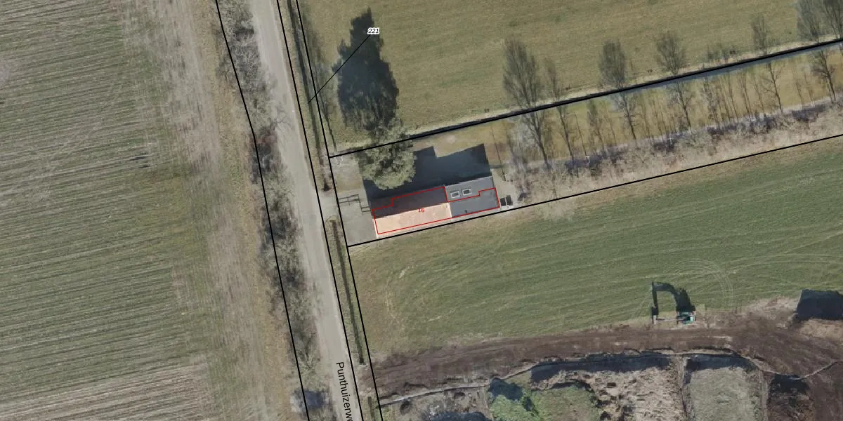 Het perceel waarop Punthuizerweg 16 staat heeft een oppervlakte van 7290 m². Dit is een zeer groot perceel. De perceeloppervlakte wordt geregistreerd door het Kadaster. Gedetailleerde informatie over de maten van dit perceel kunt u vinden in het rapport Kadastrale kaart met maatvoering van Punthuizerweg 16.