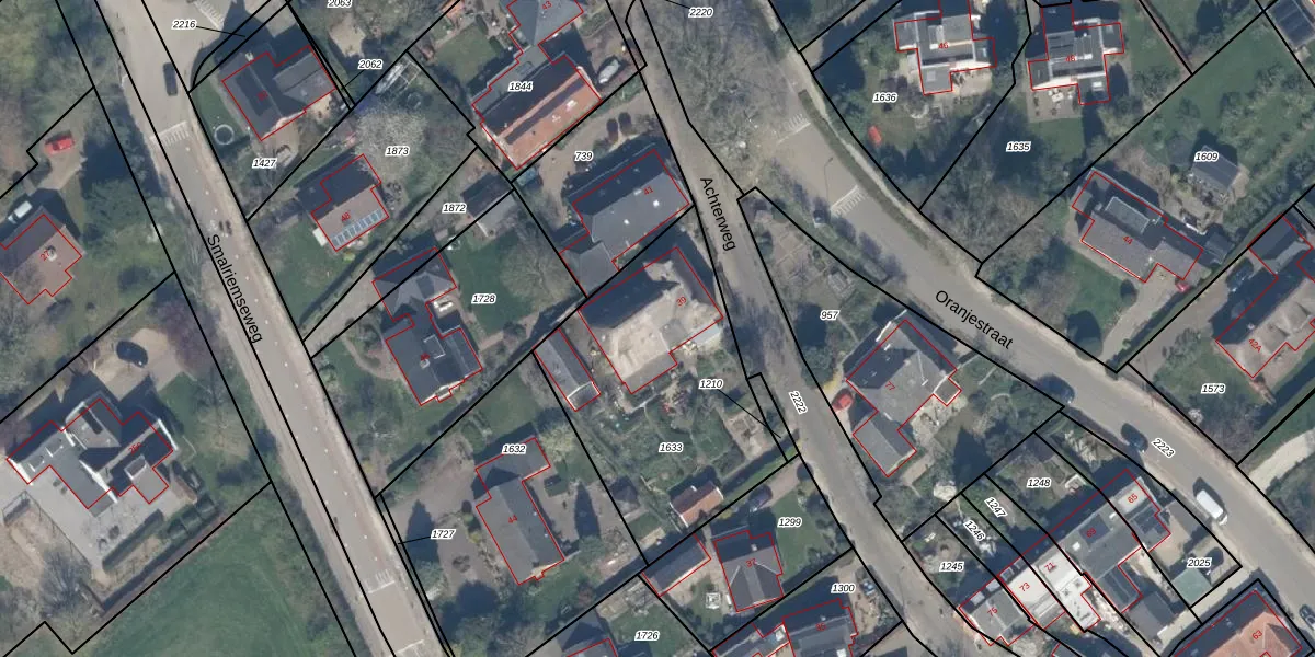 Het perceel waarop Achterweg 39 staat heeft een oppervlakte van 1020 m². Dit is een zeer groot perceel. De perceeloppervlakte wordt geregistreerd door het Kadaster. Gedetailleerde informatie over de maten van dit perceel kunt u vinden in het rapport Kadastrale kaart met maatvoering van Achterweg 39.