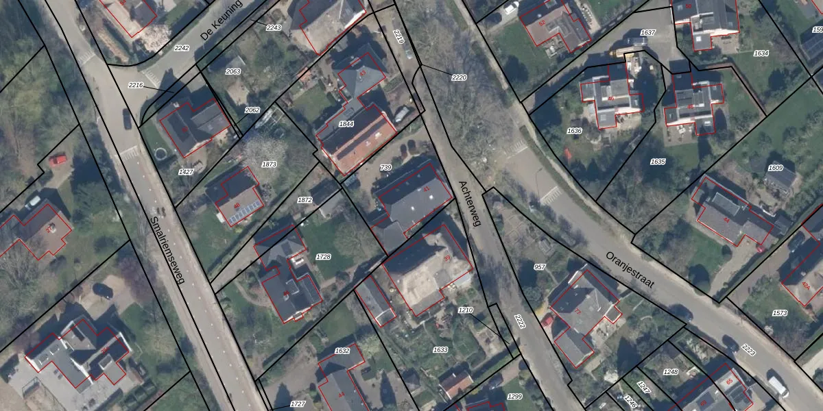 Het perceel waarop Achterweg 41 staat heeft een oppervlakte van 452 m². Dit is een groot perceel. De perceeloppervlakte wordt geregistreerd door het Kadaster. Gedetailleerde informatie over de maten van dit perceel kunt u vinden in het rapport Kadastrale kaart met maatvoering van Achterweg 41.