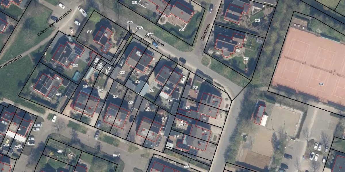 Gebruik de zoekbalk of klik op een perceel voor informatie over de adressen binnen dit perceel.