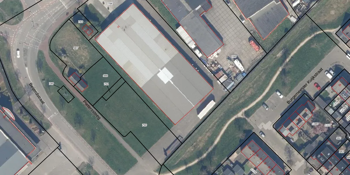 Het perceel waarop Beijerdstraat 15 staat heeft een oppervlakte van 3625 m². Dit is een zeer groot perceel. De perceeloppervlakte wordt geregistreerd door het Kadaster. Gedetailleerde informatie over de maten van dit perceel kunt u vinden in het rapport Kadastrale kaart met maatvoering van Beijerdstraat 15.