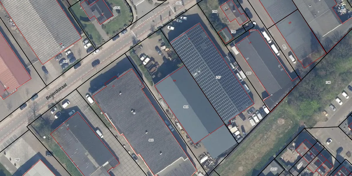Het perceel waarop Beijerdstraat 9-A staat heeft een oppervlakte van 1990 m². Dit is een zeer groot perceel. De perceeloppervlakte wordt geregistreerd door het Kadaster. Gedetailleerde informatie over de maten van dit perceel kunt u vinden in het rapport Kadastrale kaart met maatvoering van Beijerdstraat 9-A.