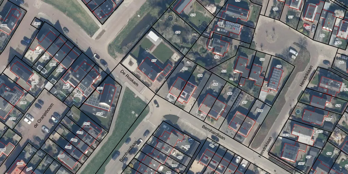 Gebruik de zoekbalk of klik op een perceel voor informatie over de adressen binnen dit perceel.