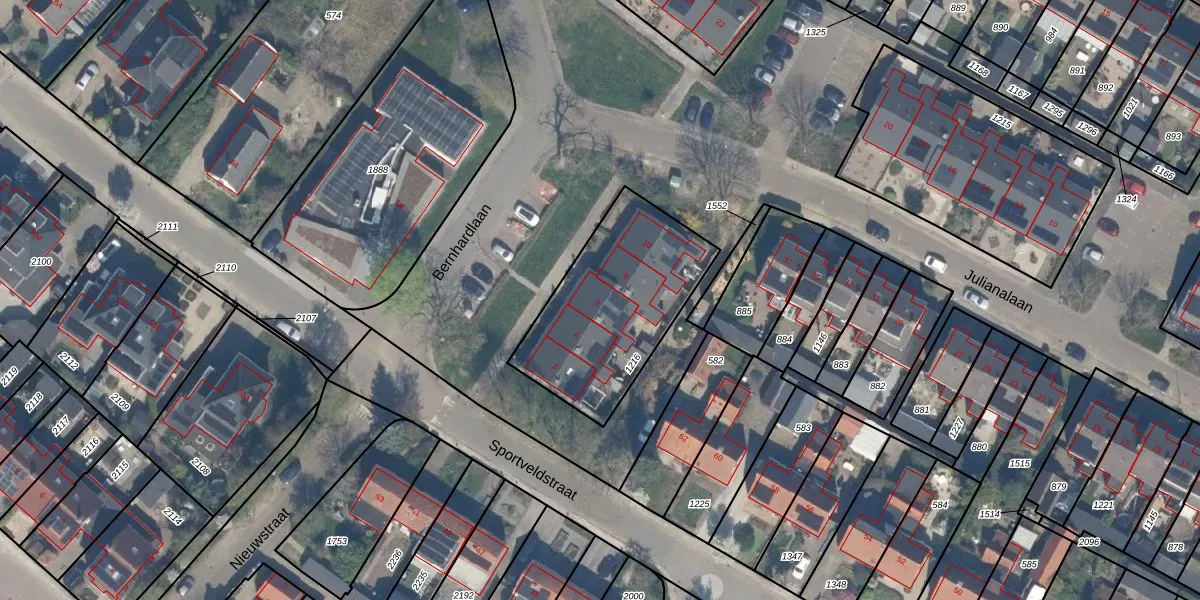 Het perceel waarop Bernhardlaan 6 staat heeft een oppervlakte van 679 m². Dit is een groot perceel. De perceeloppervlakte wordt geregistreerd door het Kadaster. Gedetailleerde informatie over de maten van dit perceel kunt u vinden in het rapport Kadastrale kaart met maatvoering van Bernhardlaan 6.