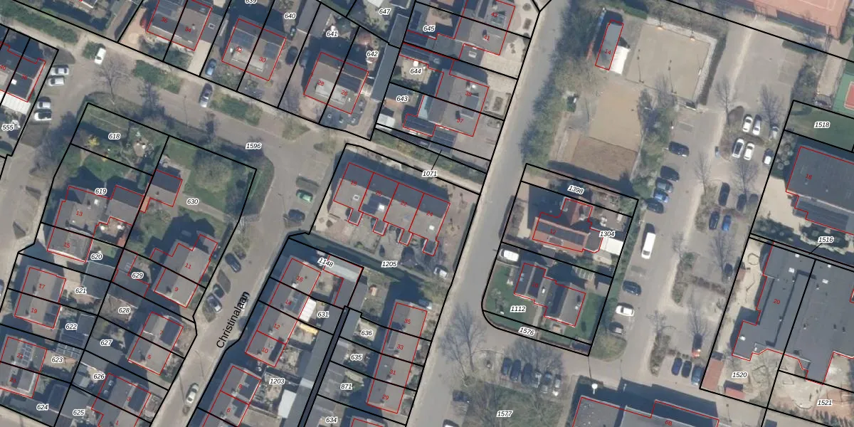 Het perceel waarop Christinalaan 24 staat heeft een oppervlakte van 1130 m². Dit is een zeer groot perceel. De perceeloppervlakte wordt geregistreerd door het Kadaster. Gedetailleerde informatie over de maten van dit perceel kunt u vinden in het rapport Kadastrale kaart met maatvoering van Christinalaan 24.