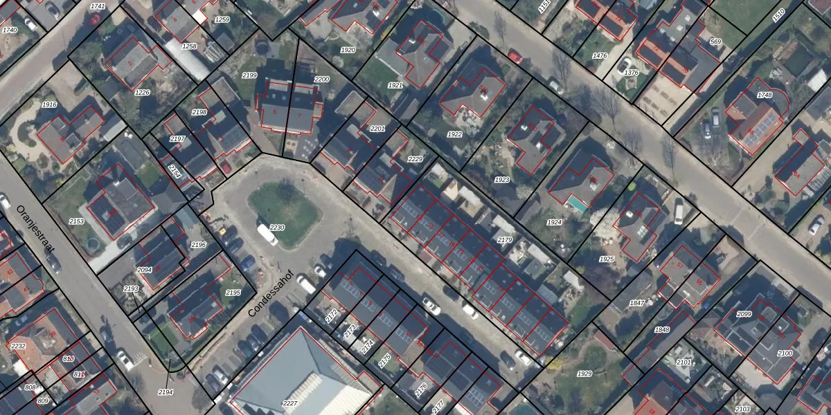 Het perceel waarop Condessahof 13 staat heeft een oppervlakte van 1196 m². Dit is een zeer groot perceel. De perceeloppervlakte wordt geregistreerd door het Kadaster. Gedetailleerde informatie over de maten van dit perceel kunt u vinden in het rapport Kadastrale kaart met maatvoering van Condessahof 13.