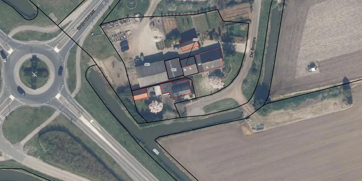 De Bosjes 2 is gelegen op kadastraal perceel BRN00M312. Deze kadastrale aanduiding is uniek en wordt gebruikt door het Kadaster om eigendomsrechten en andere zakelijke rechten vast te leggen. Het perceel maakt onderdeel uit van de kadastrale gemeente Buren.