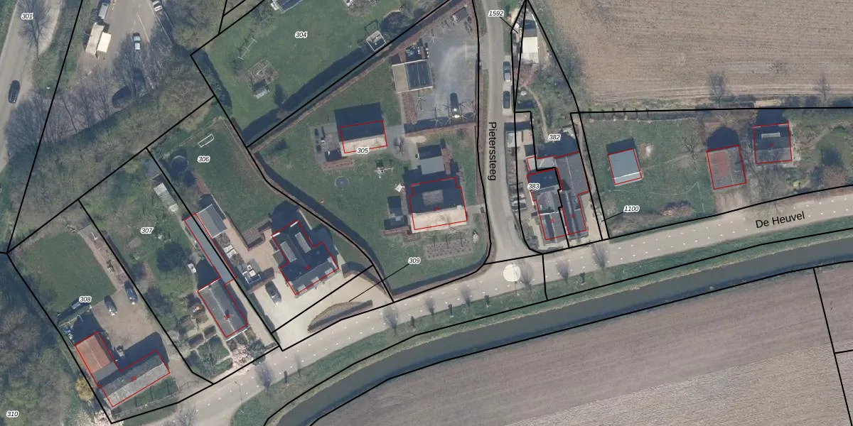 De Heuvel 14 is gelegen op kadastraal perceel BRN00M305. Deze kadastrale aanduiding is uniek en wordt gebruikt door het Kadaster om eigendomsrechten en andere zakelijke rechten vast te leggen. Het perceel maakt onderdeel uit van de kadastrale gemeente Buren.