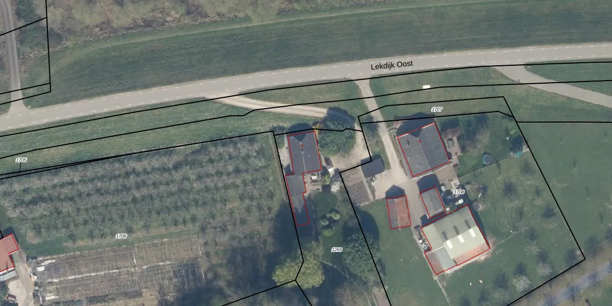 Het perceel waarop Lekdijk Oost 6 staat heeft een oppervlakte van 1910 m². Dit is een zeer groot perceel. De perceeloppervlakte wordt geregistreerd door het Kadaster. Gedetailleerde informatie over de maten van dit perceel kunt u vinden in het rapport Kadastrale kaart met maatvoering van Lekdijk Oost 6.