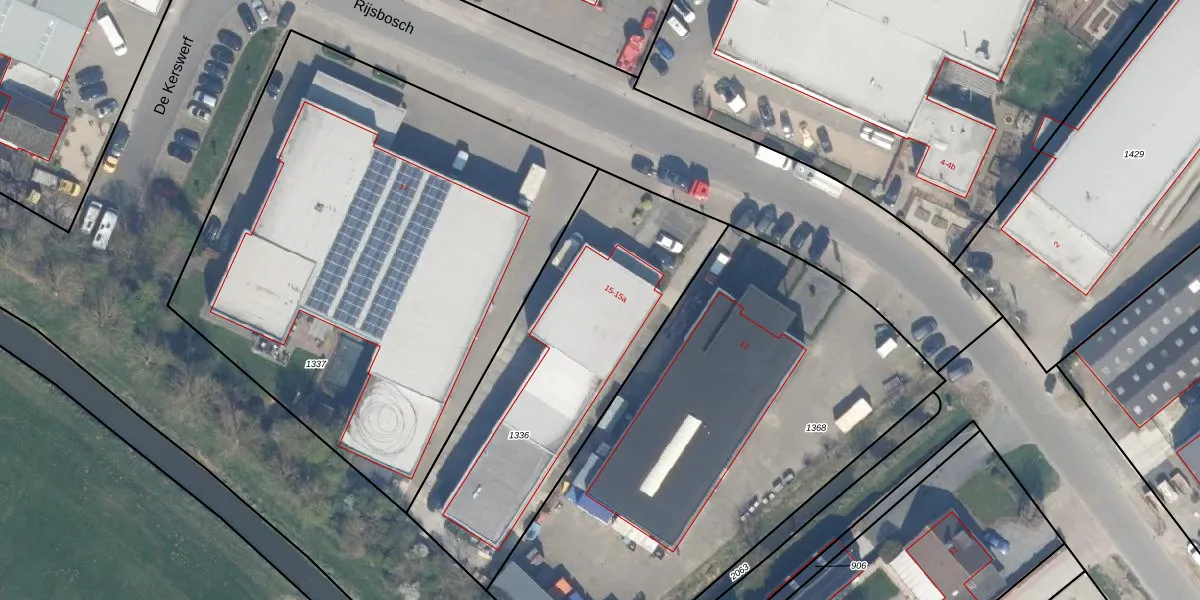 Het perceel waarop Rijsbosch 15 staat heeft een oppervlakte van 1440 m². Dit is een zeer groot perceel. De perceeloppervlakte wordt geregistreerd door het Kadaster. Gedetailleerde informatie over de maten van dit perceel kunt u vinden in het rapport Kadastrale kaart met maatvoering van Rijsbosch 15.