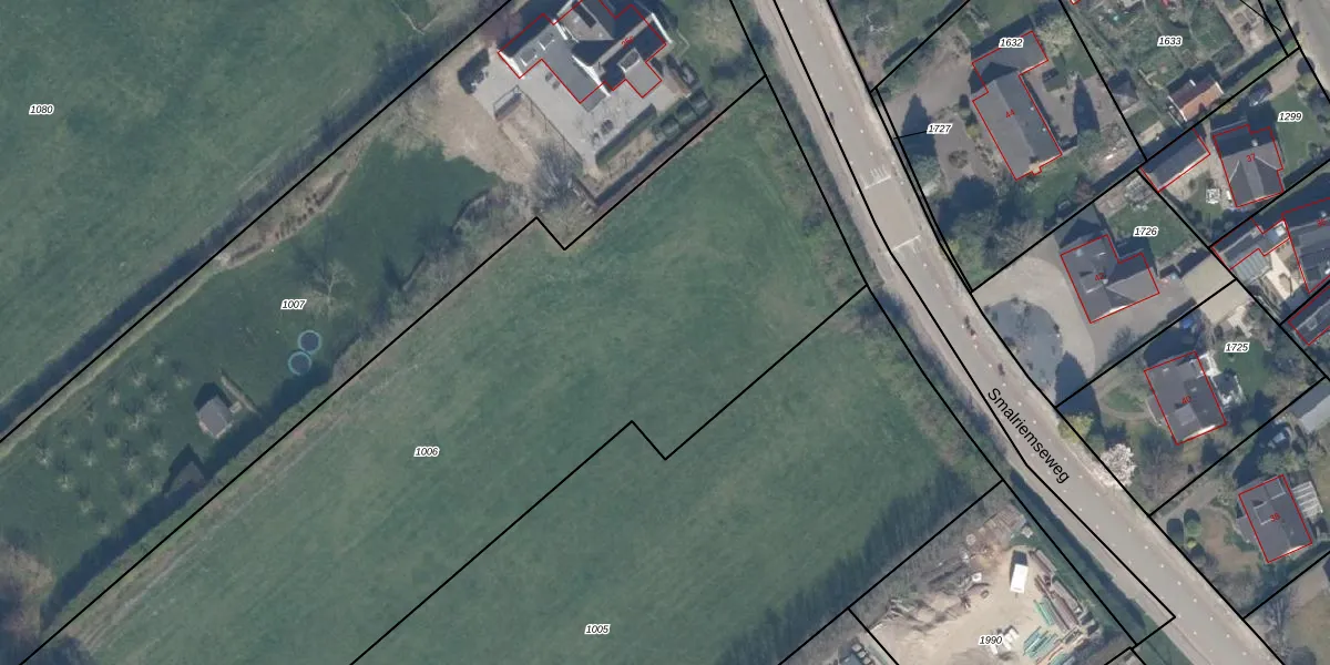 Het perceel waarop Smalriemseweg 25-d staat heeft een oppervlakte van 5160 m². Dit is een zeer groot perceel. De perceeloppervlakte wordt geregistreerd door het Kadaster. Gedetailleerde informatie over de maten van dit perceel kunt u vinden in het rapport Kadastrale kaart met maatvoering van Smalriemseweg 25-d.
