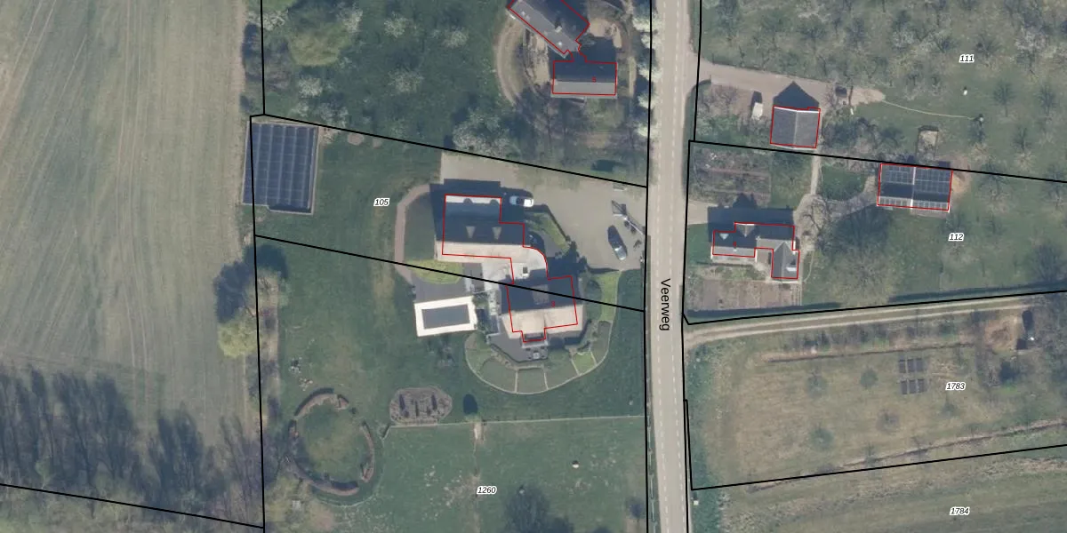 Het perceel waarop Veerweg 3 staat heeft een oppervlakte van 1710 m². Dit is een zeer groot perceel. De perceeloppervlakte wordt geregistreerd door het Kadaster. Gedetailleerde informatie over de maten van dit perceel kunt u vinden in het rapport Kadastrale kaart met maatvoering van Veerweg 3.