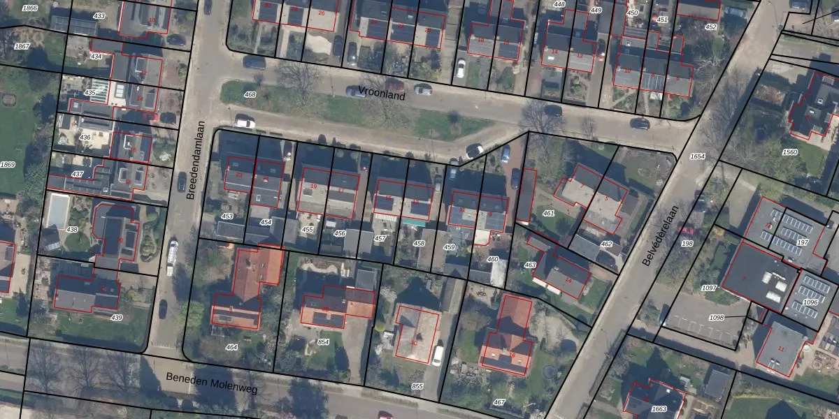 Gebruik de zoekbalk of klik op een perceel voor informatie over de adressen binnen dit perceel.