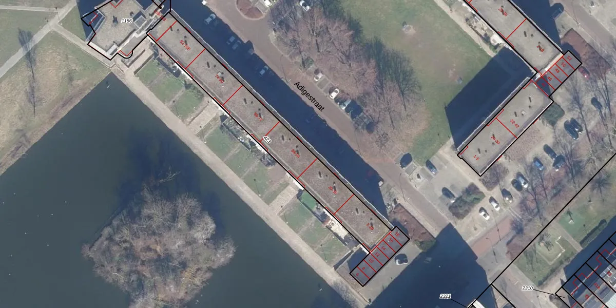 Het perceel waarop Adigestraat 38 staat heeft een oppervlakte van 1168 m². Dit is een zeer groot perceel. De perceeloppervlakte wordt geregistreerd door het Kadaster. Gedetailleerde informatie over de maten van dit perceel kunt u vinden in het rapport Kadastrale kaart met maatvoering van Adigestraat 38.