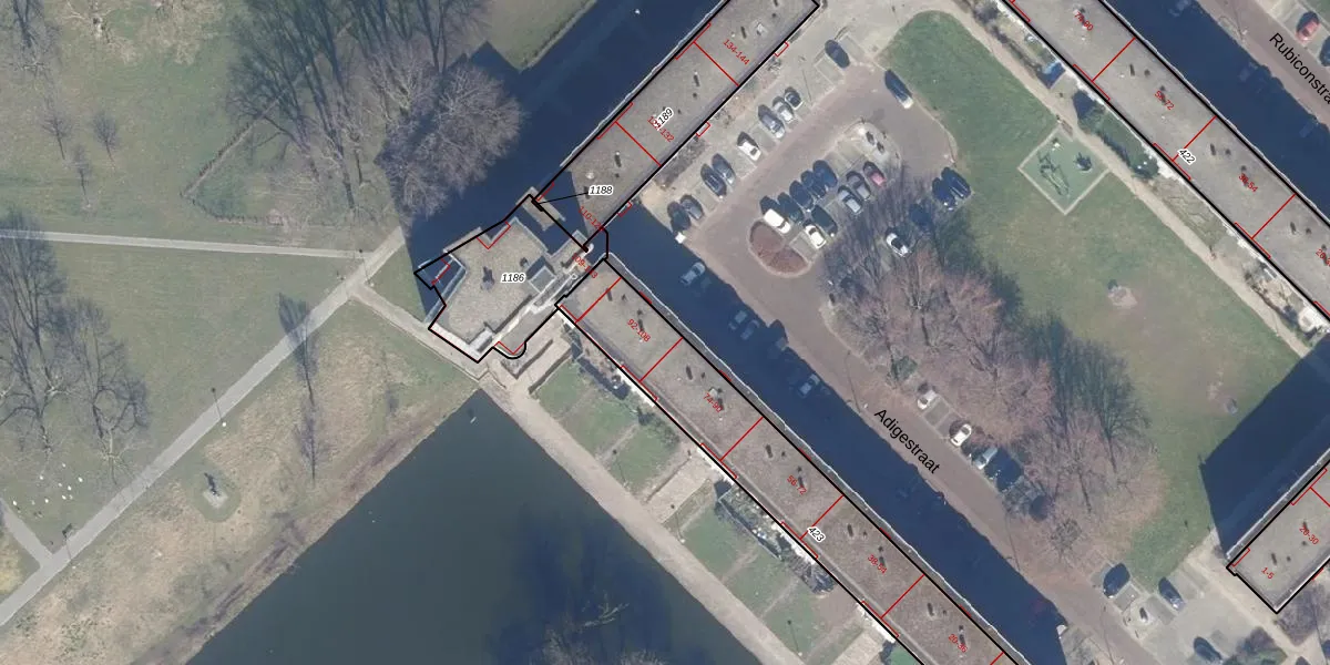 Het perceel waarop Adigestraat 92 staat heeft een oppervlakte van 1168 m². Dit is een zeer groot perceel. De perceeloppervlakte wordt geregistreerd door het Kadaster. Gedetailleerde informatie over de maten van dit perceel kunt u vinden in het rapport Kadastrale kaart met maatvoering van Adigestraat 92.