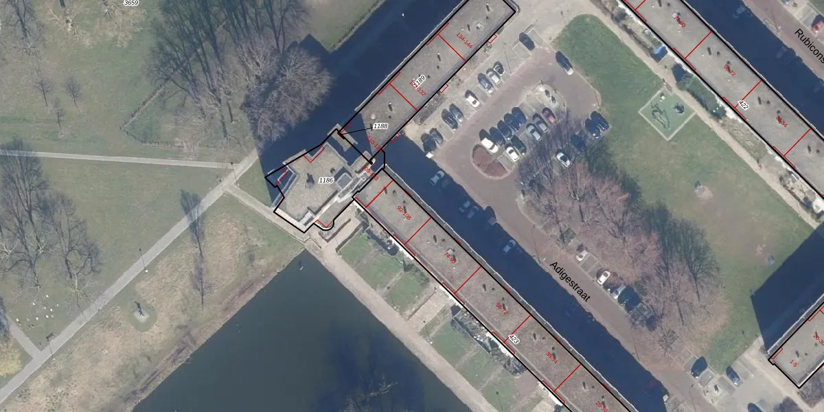 Het perceel waarop Adigestraat 94 staat heeft een oppervlakte van 1168 m². Dit is een zeer groot perceel. De perceeloppervlakte wordt geregistreerd door het Kadaster. Gedetailleerde informatie over de maten van dit perceel kunt u vinden in het rapport Kadastrale kaart met maatvoering van Adigestraat 94.