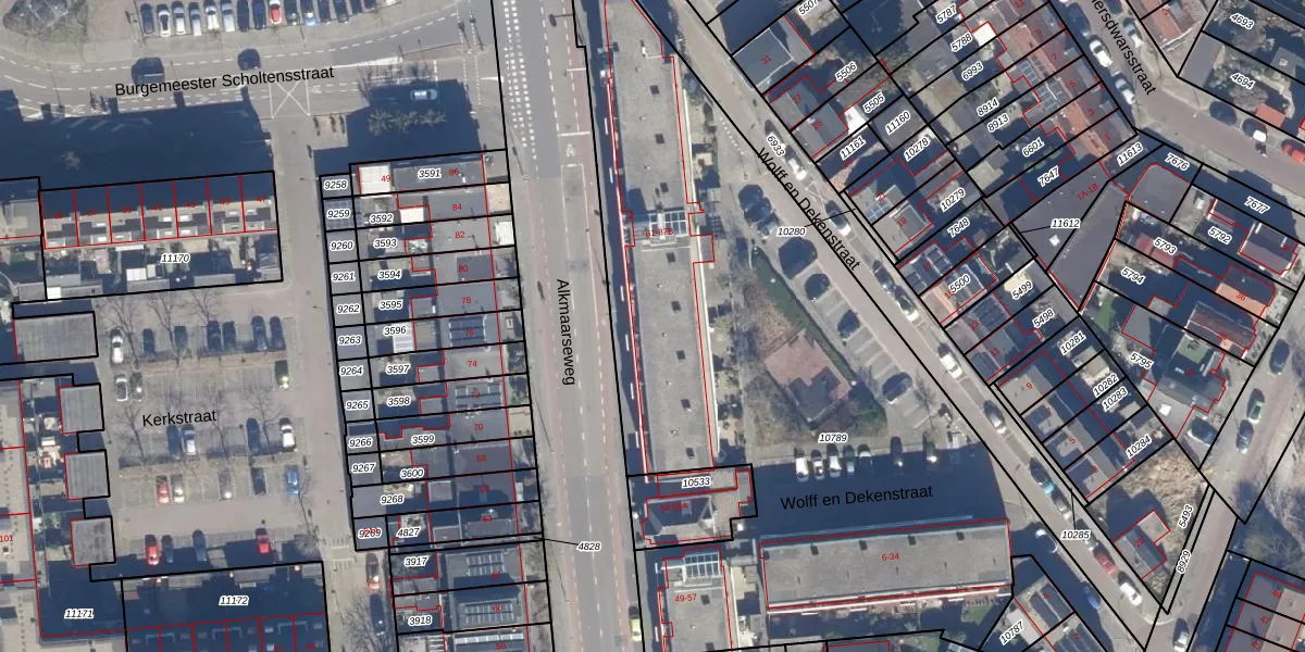 Het perceel waarop Alkmaarseweg 65-A staat heeft een oppervlakte van 3988 m². Dit is een zeer groot perceel. De perceeloppervlakte wordt geregistreerd door het Kadaster. Gedetailleerde informatie over de maten van dit perceel kunt u vinden in het rapport Kadastrale kaart met maatvoering van Alkmaarseweg 65-A.