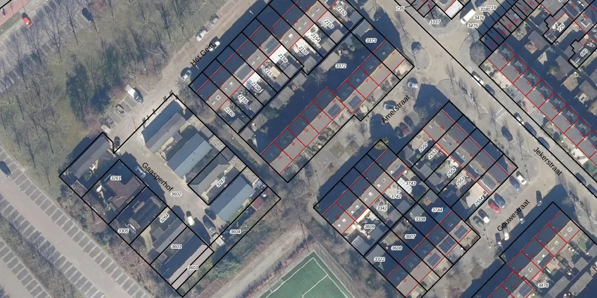 Het perceel waarop Amerstraat 15 staat heeft een oppervlakte van 1193 m². Dit is een zeer groot perceel. De perceeloppervlakte wordt geregistreerd door het Kadaster. Gedetailleerde informatie over de maten van dit perceel kunt u vinden in het rapport Kadastrale kaart met maatvoering van Amerstraat 15.
