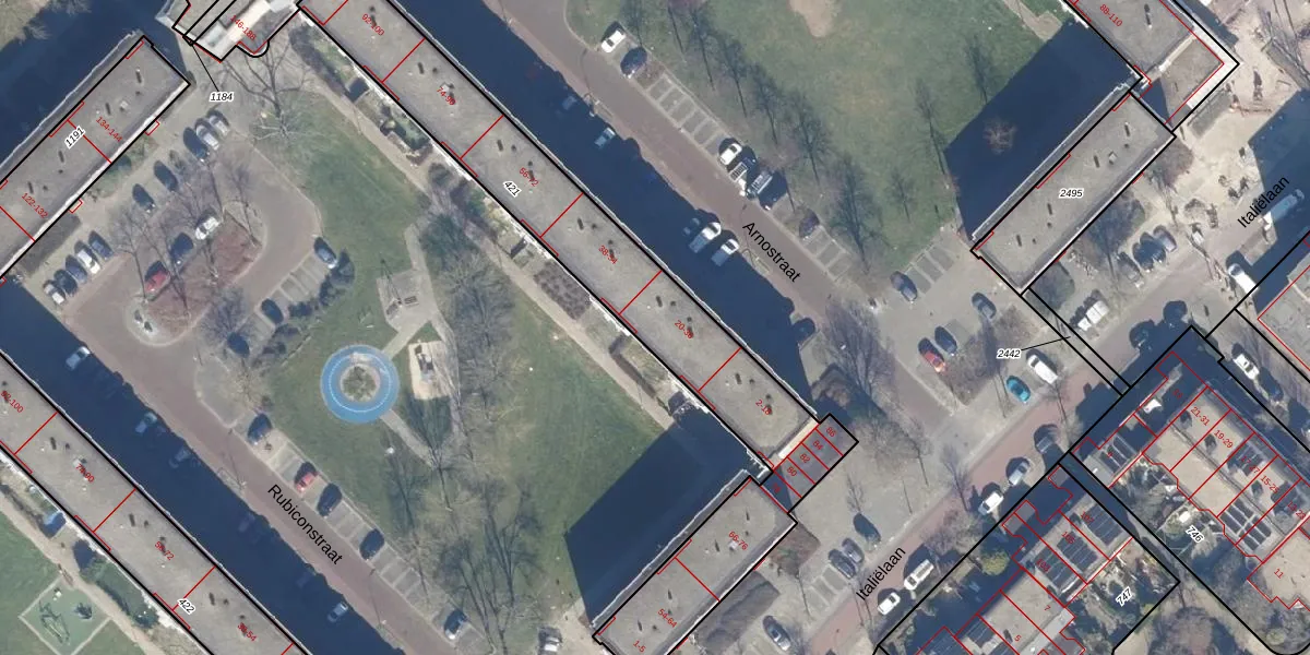 Het perceel waarop Arnostraat 36 staat heeft een oppervlakte van 1489 m². Dit is een zeer groot perceel. De perceeloppervlakte wordt geregistreerd door het Kadaster. Gedetailleerde informatie over de maten van dit perceel kunt u vinden in het rapport Kadastrale kaart met maatvoering van Arnostraat 36.
