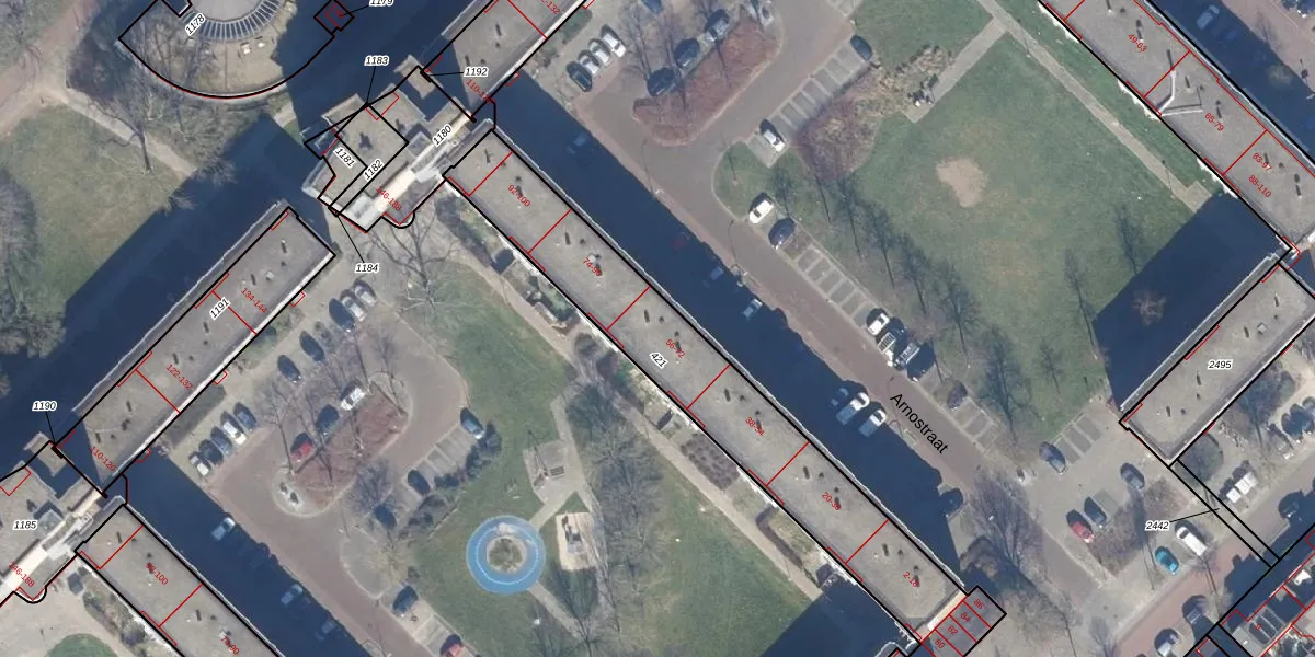 Het perceel waarop Arnostraat 66 staat heeft een oppervlakte van 1489 m². Dit is een zeer groot perceel. De perceeloppervlakte wordt geregistreerd door het Kadaster. Gedetailleerde informatie over de maten van dit perceel kunt u vinden in het rapport Kadastrale kaart met maatvoering van Arnostraat 66.