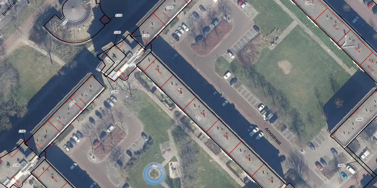 Het perceel waarop Arnostraat 74 staat heeft een oppervlakte van 1489 m². Dit is een zeer groot perceel. De perceeloppervlakte wordt geregistreerd door het Kadaster. Gedetailleerde informatie over de maten van dit perceel kunt u vinden in het rapport Kadastrale kaart met maatvoering van Arnostraat 74.