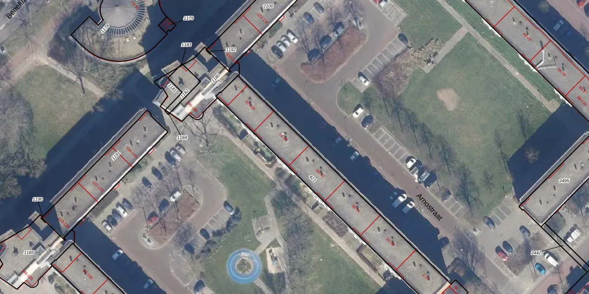 Het perceel waarop Arnostraat 80 staat heeft een oppervlakte van 1489 m². Dit is een zeer groot perceel. De perceeloppervlakte wordt geregistreerd door het Kadaster. Gedetailleerde informatie over de maten van dit perceel kunt u vinden in het rapport Kadastrale kaart met maatvoering van Arnostraat 80.