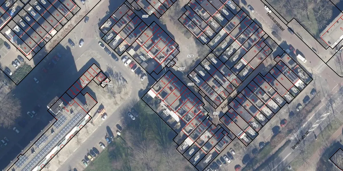 Het perceel waarop Aubachstraat 36 staat heeft een oppervlakte van 835 m². Dit is een groot perceel. De perceeloppervlakte wordt geregistreerd door het Kadaster. Gedetailleerde informatie over de maten van dit perceel kunt u vinden in het rapport Kadastrale kaart met maatvoering van Aubachstraat 36.