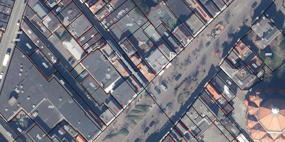 Het perceel waarop Begijnenstraat 1 staat heeft een oppervlakte van 94 m². Dit is een klein perceel. De perceeloppervlakte wordt geregistreerd door het Kadaster. Gedetailleerde informatie over de maten van dit perceel kunt u vinden in het rapport Kadastrale kaart met maatvoering van Begijnenstraat 1.