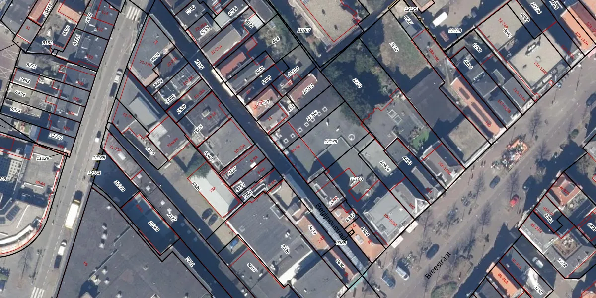 Het perceel waarop Begijnenstraat 9-B staat heeft een oppervlakte van 372 m². Dit is een groot perceel. De perceeloppervlakte wordt geregistreerd door het Kadaster. Gedetailleerde informatie over de maten van dit perceel kunt u vinden in het rapport Kadastrale kaart met maatvoering van Begijnenstraat 9-B.