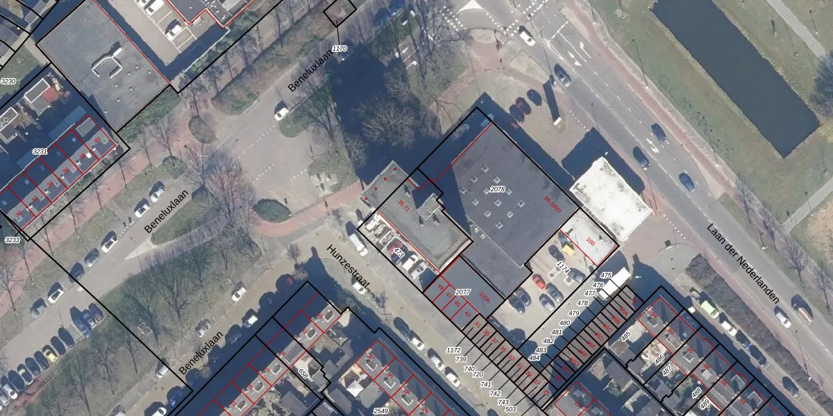 Het perceel waarop Beneluxlaan 41 staat heeft een oppervlakte van 417 m². Dit is een groot perceel. De perceeloppervlakte wordt geregistreerd door het Kadaster. Gedetailleerde informatie over de maten van dit perceel kunt u vinden in het rapport Kadastrale kaart met maatvoering van Beneluxlaan 41.