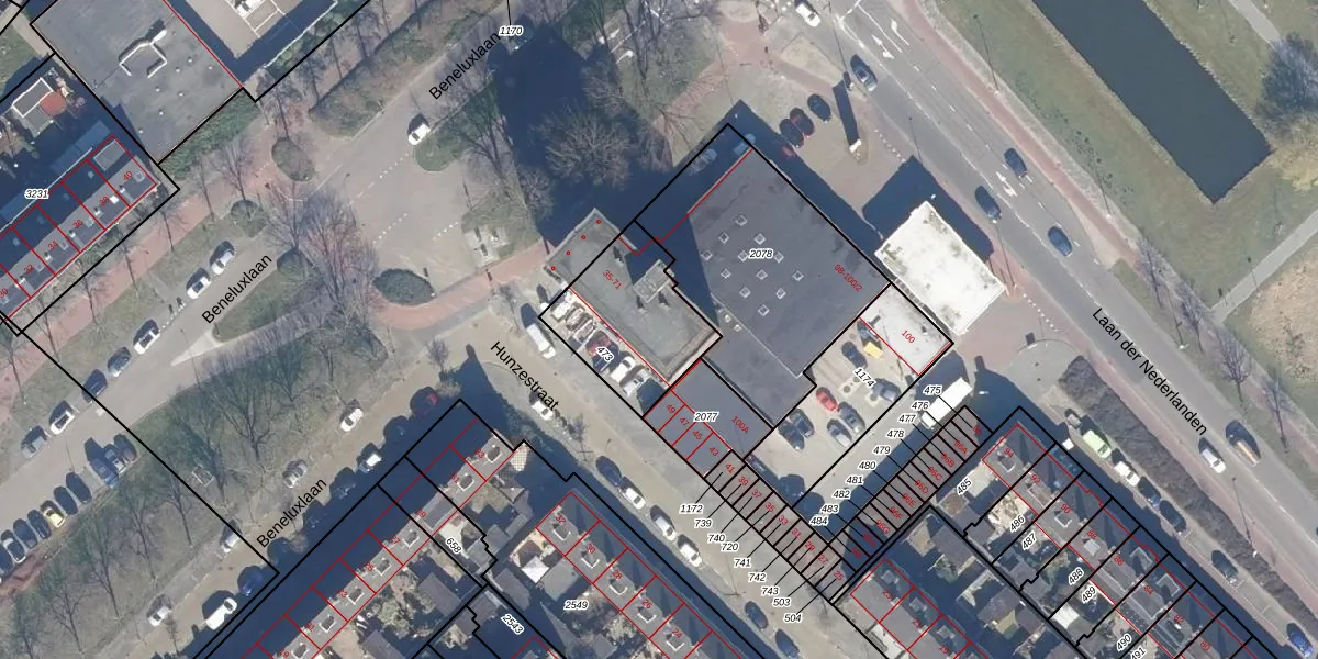 Het perceel waarop Beneluxlaan 59 staat heeft een oppervlakte van 417 m². Dit is een groot perceel. De perceeloppervlakte wordt geregistreerd door het Kadaster. Gedetailleerde informatie over de maten van dit perceel kunt u vinden in het rapport Kadastrale kaart met maatvoering van Beneluxlaan 59.