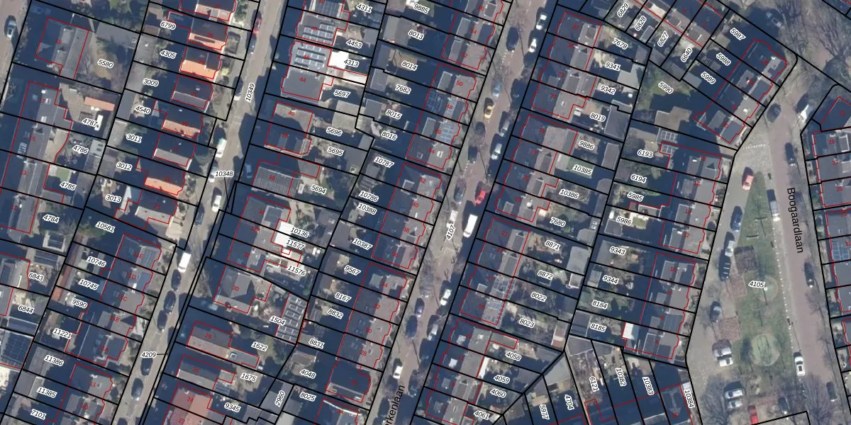Gebruik de zoekbalk of klik op een perceel voor informatie over de adressen binnen dit perceel.