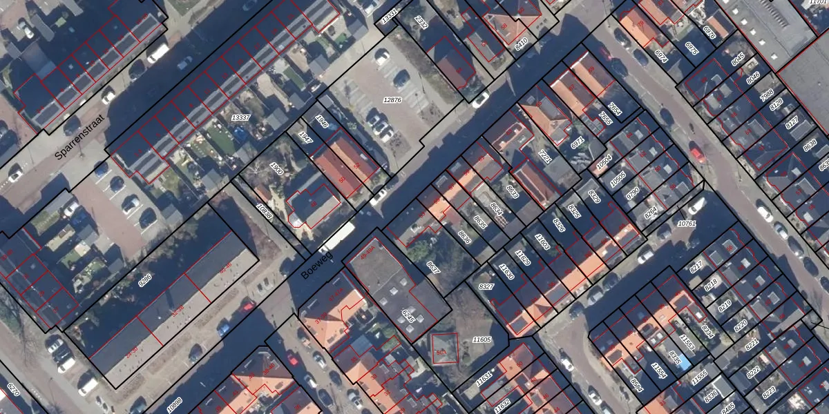 Het perceel waarop Boeweg 53 staat heeft een oppervlakte van 266 m². Dit is een middelgroot perceel. De perceeloppervlakte wordt geregistreerd door het Kadaster. Gedetailleerde informatie over de maten van dit perceel kunt u vinden in het rapport Kadastrale kaart met maatvoering van Boeweg 53.