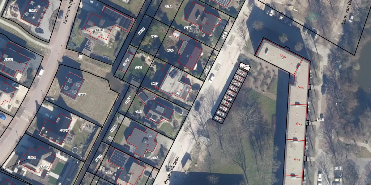 Brederodelaan 16 is gelegen op kadastraal perceel WIJ02B8627. Deze kadastrale aanduiding is uniek en wordt gebruikt door het Kadaster om eigendomsrechten en andere zakelijke rechten vast te leggen. Het perceel maakt onderdeel uit van de kadastrale gemeente Wijk aan Zee en Duin.