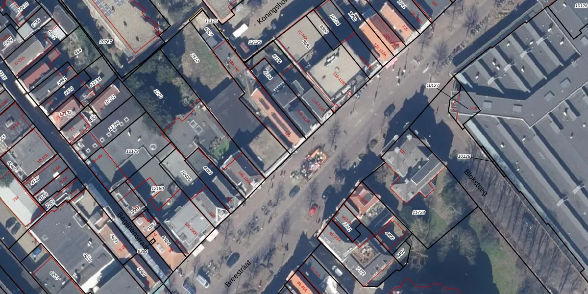Het perceel waarop Breestraat 110 staat heeft een oppervlakte van 368 m². Dit is een groot perceel. De perceeloppervlakte wordt geregistreerd door het Kadaster. Gedetailleerde informatie over de maten van dit perceel kunt u vinden in het rapport Kadastrale kaart met maatvoering van Breestraat 110.