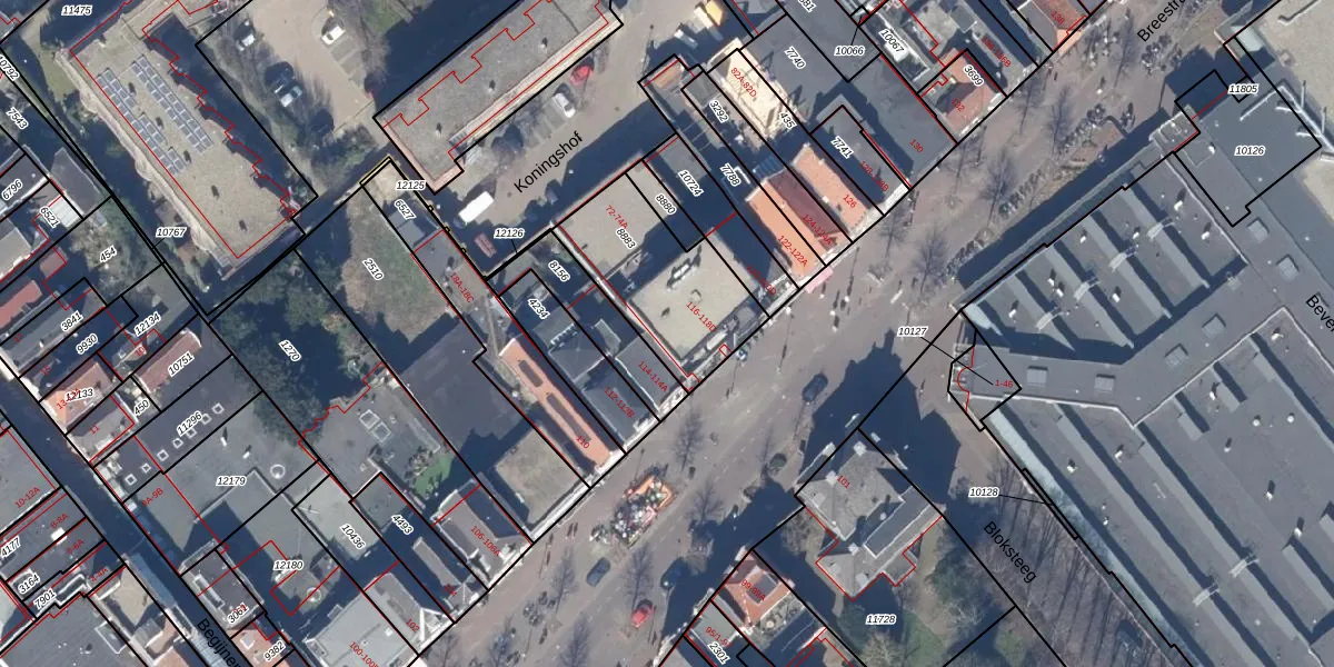 Het perceel waarop Breestraat 116-C staat heeft een oppervlakte van 484 m². Dit is een groot perceel. De perceeloppervlakte wordt geregistreerd door het Kadaster. Gedetailleerde informatie over de maten van dit perceel kunt u vinden in het rapport Kadastrale kaart met maatvoering van Breestraat 116-C.