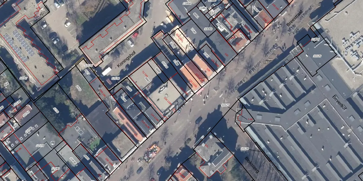 Het perceel waarop Breestraat 120-C staat heeft een oppervlakte van 190 m². Dit is een middelgroot perceel. De perceeloppervlakte wordt geregistreerd door het Kadaster. Gedetailleerde informatie over de maten van dit perceel kunt u vinden in het rapport Kadastrale kaart met maatvoering van Breestraat 120-C.