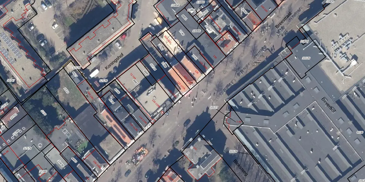 Het perceel waarop Breestraat 122-A staat heeft een oppervlakte van 194 m². Dit is een middelgroot perceel. De perceeloppervlakte wordt geregistreerd door het Kadaster. Gedetailleerde informatie over de maten van dit perceel kunt u vinden in het rapport Kadastrale kaart met maatvoering van Breestraat 122-A.