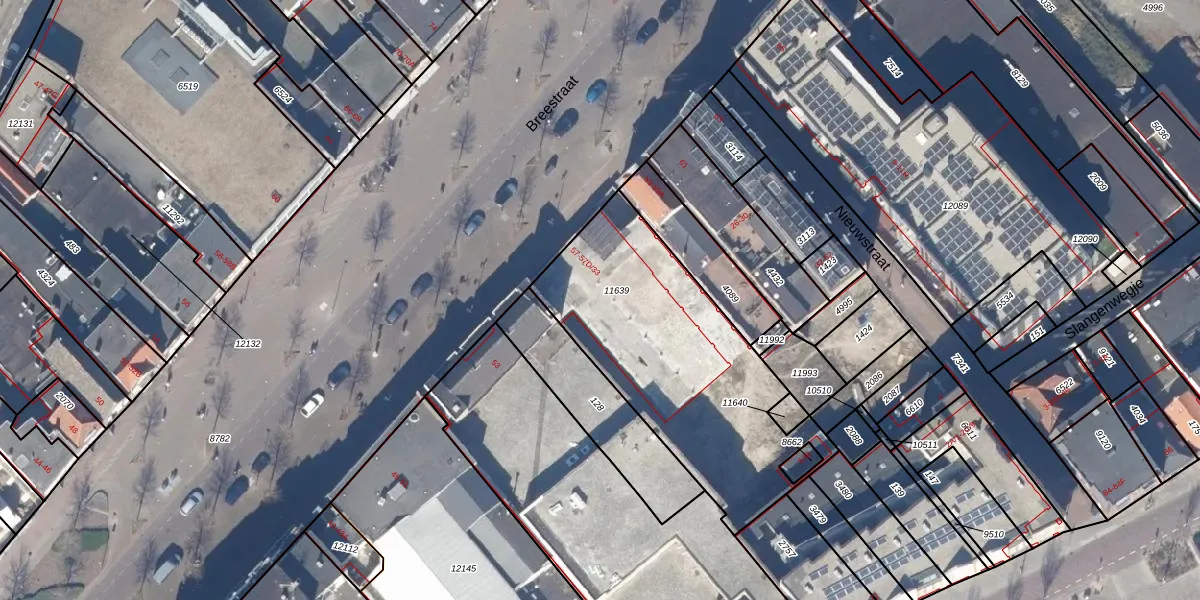 Het perceel waarop Breestraat 57-D-19 staat heeft een oppervlakte van 1170 m². Dit is een zeer groot perceel. De perceeloppervlakte wordt geregistreerd door het Kadaster. Gedetailleerde informatie over de maten van dit perceel kunt u vinden in het rapport Kadastrale kaart met maatvoering van Breestraat 57-D-19.