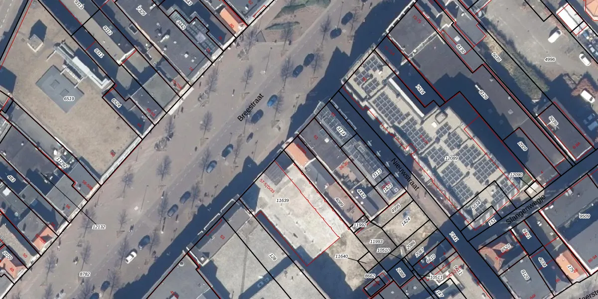 Het perceel waarop Breestraat 59 staat heeft een oppervlakte van 220 m². Dit is een middelgroot perceel. De perceeloppervlakte wordt geregistreerd door het Kadaster. Gedetailleerde informatie over de maten van dit perceel kunt u vinden in het rapport Kadastrale kaart met maatvoering van Breestraat 59.