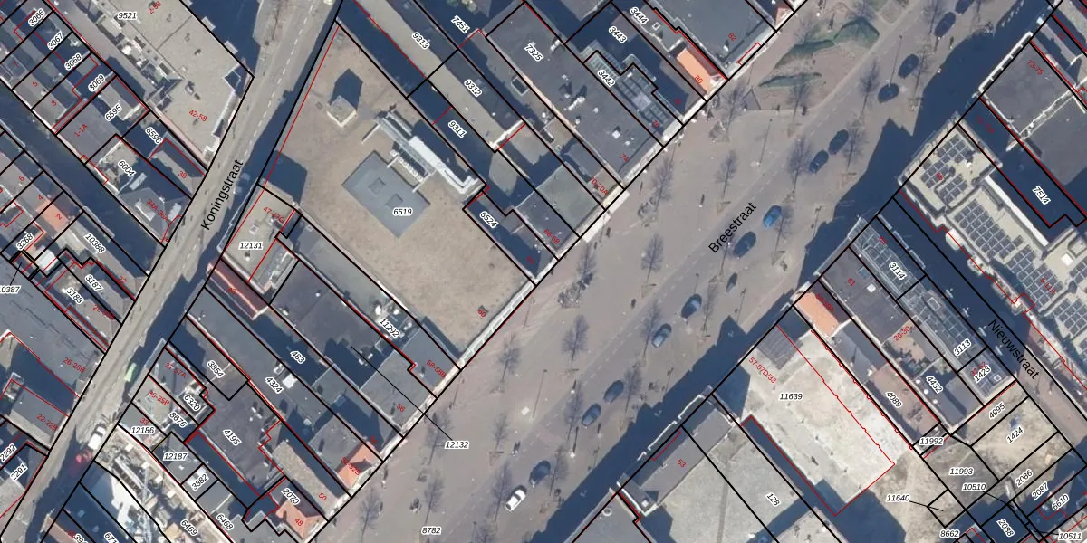 Het perceel waarop Breestraat 64 staat heeft een oppervlakte van 113 m². Dit is een middelgroot perceel. De perceeloppervlakte wordt geregistreerd door het Kadaster. Gedetailleerde informatie over de maten van dit perceel kunt u vinden in het rapport Kadastrale kaart met maatvoering van Breestraat 64.